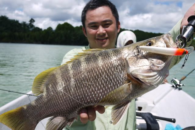 According to the IGFA it is a MJ, but to me i will rather call it the Borneo Black Bass! [:D] There are too many facts and prove that The Borneo Black Bass is not a MJ! We have caught BBass at a totally freshwater region while MJ prefer to the saltwater region. When MJ grows to 3kg above they will migrate to the sea to grow bigger and mate. That’s why we seldom catch MJ that is more then 3kg big. While BBass on the other hand, the biggest our group have caught is a 14kg BBass. Ok maybe the color of this fish changes on different environment setting, so cannot argue that, but the head, eye, teeth, lips, fins and body. Has an obvious different, even the behaviour is different…