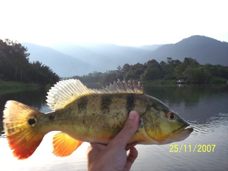 Not too long ago there was a report concerning sighting of a dead peacock bass by a forumer in Chenderoh. One may wonder whether it was a myth or truth. The following photo taken last Sunday gives a firm answer YES! Peacock has spread to Chenderoh and they are breeding well. This is a healthy female PB caught by my buddy, found 2 strips of roe when gutted. My LC lure got hitted and missed twice by a shadow probably the male counterpart when casted to the same spot right after landing of the first PB. Should have slowed down the speed forgotten that was not a sebarau. Chenderoh consists of many ‘sauk’, still water excellent breeding ground for any species incl. PB.