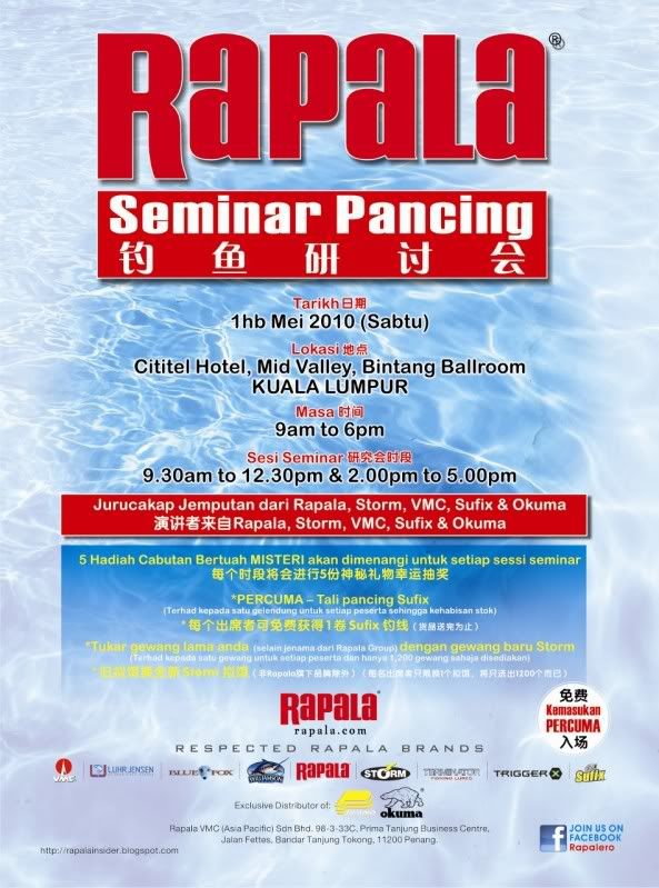 There will be no sales, purely a seminar for all to learn and enjoy. Hm… good question about the non rapala lures exchanged. We got no idea at this moment too. ha ha!!!
