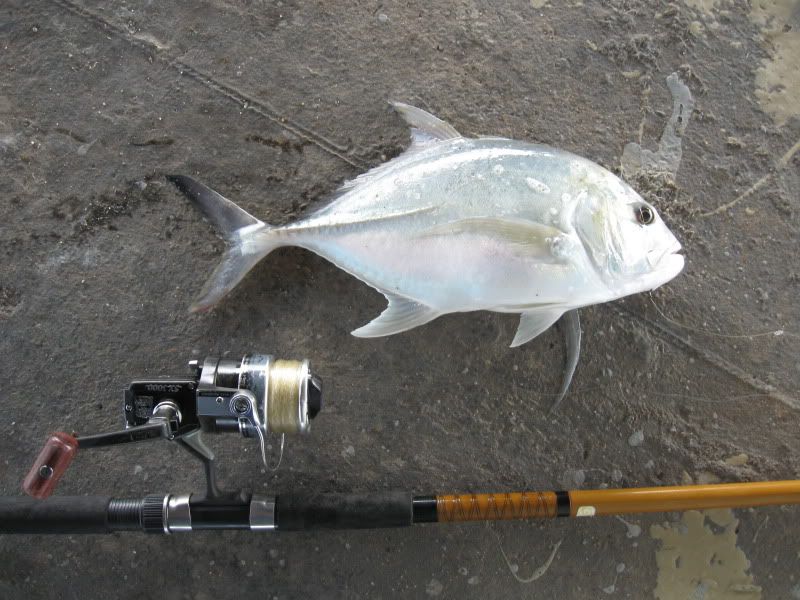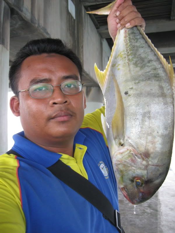 baru la naik selepas 2 kali strike ganas yg putuskan main line 40 lbs. memang gila2 ikan sini. adik den dok tiang lain. dia pon 4 kali putuih=( naik sekoq ja, tu pon sama spesis dgn ikan nie..yg nie dalam 2 kg ja[:)]