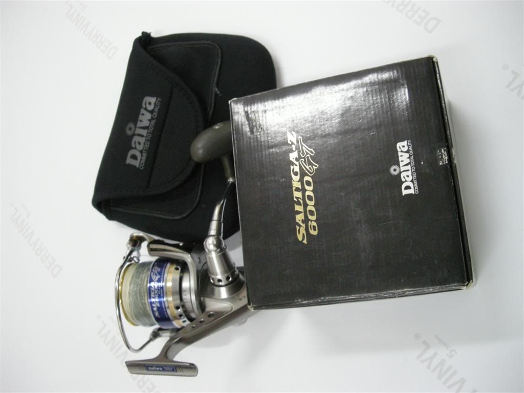 The item shown is a used Daiwa SaltigaZ 6000 GT.