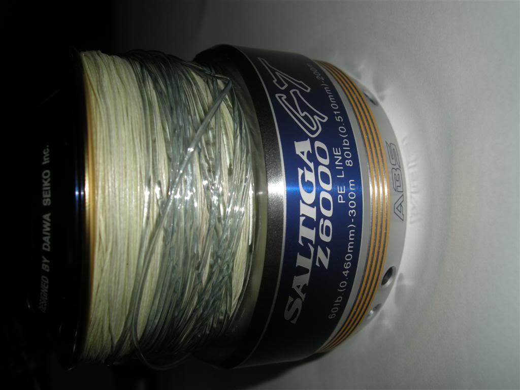 It comes with 80lb spiderwire full spooling and 100lb shock leader nicely fg knot tying, soft cover bag, Hard box & original knob only.